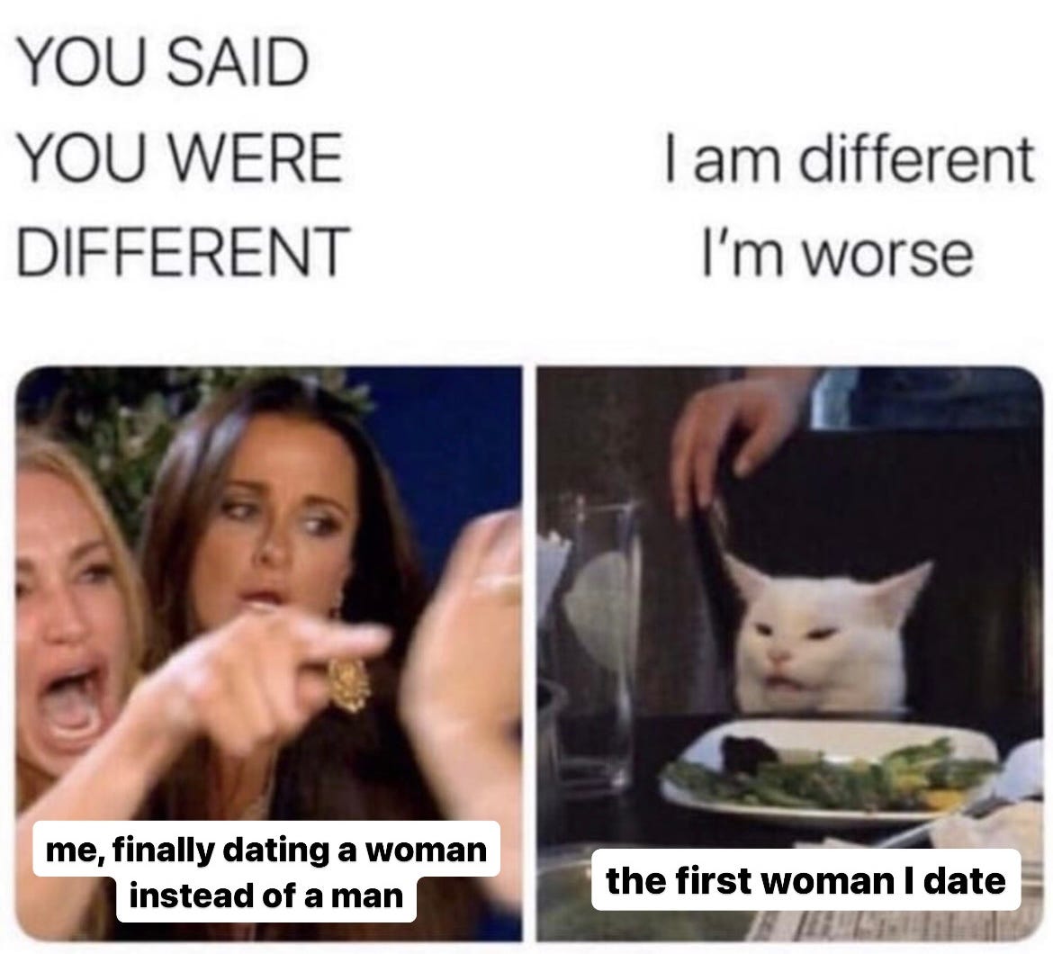 I’ve thought a lot about how ~the queerness of it all~ informed our relationship and what I tolerated within it. My ex partner had been the more intense one about our relationship from the start– more futuristic, more giving of intense expressions of love from very early on, etc. Looking back, it probably should’ve been a red flag. But, falling into quick love is a canon event for queer women. There’s a running joke in the queer community that goes like this: if you see a U-Haul driving down the road, it’s two lesbians on their second date. She was my first girlfriend. I often feel a level of instant camaraderie with women that makes it easier to get intimate more quickly. And, I wanted to think that I was worthy of such adoration from her. So I thought, “This must just be how it is with women.” I thought we were just being gay. Now, I realize that I was more likely being love bombed, because she would go on to treat me worse than anyone else I’ve dated. But manyyyy queer women have walked this path before me I am sure.